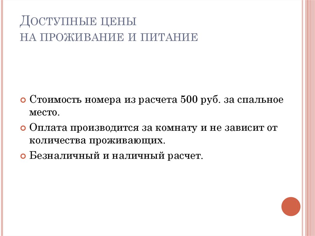 ДОСТУПНЫЕ ЦЕНЫНА ПРОЖИВАНИЕ И ПИТАНИЕ