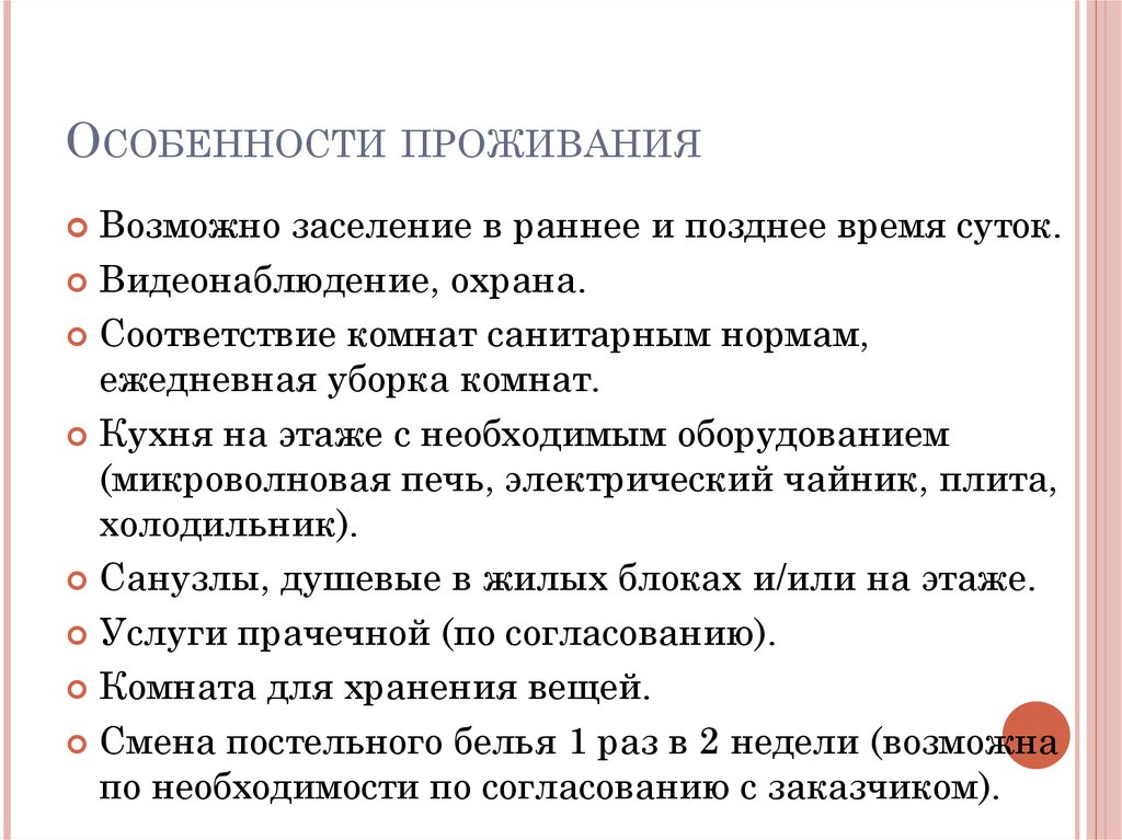 ОСОБЕННОСТИ ПРОЖИВАНИЯВозможно заселение в раннее и позднее время суток.