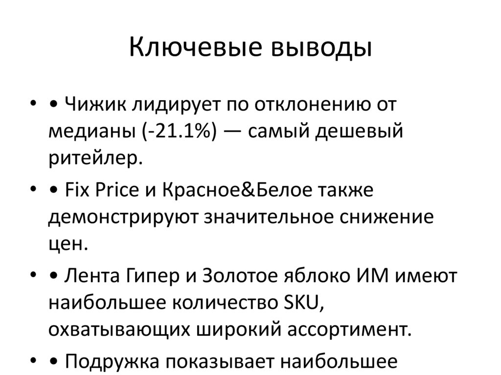 Ключевые выводы• • Чижик лидирует по отклонению от