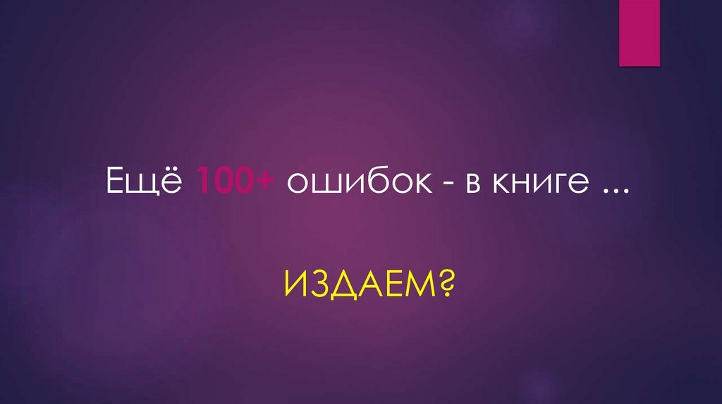 Ещё 100+ ошибок - в книге ...ИЗДАЕМ?