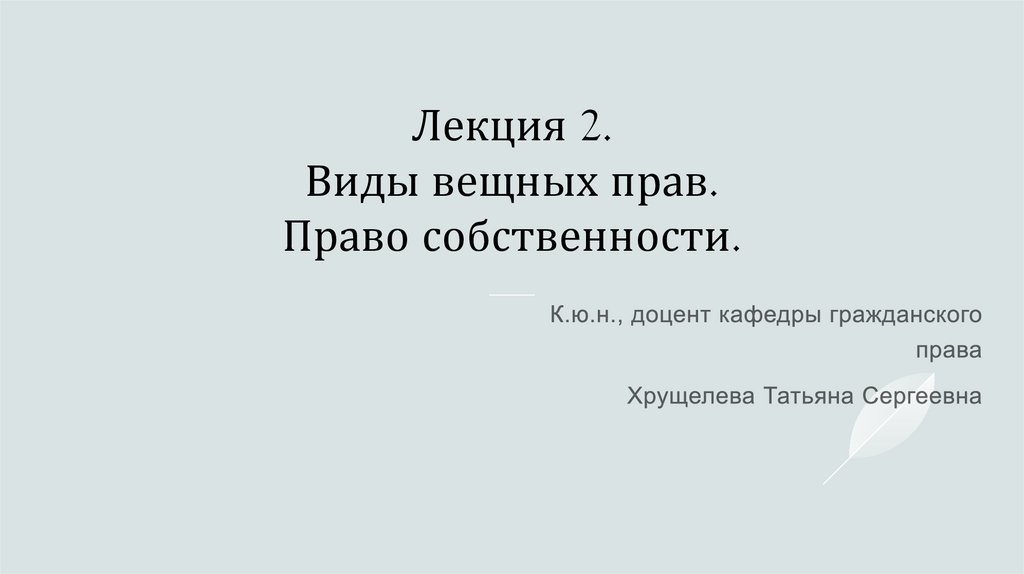 1. Лекция 2. Виды вещных прав. Право собственности.