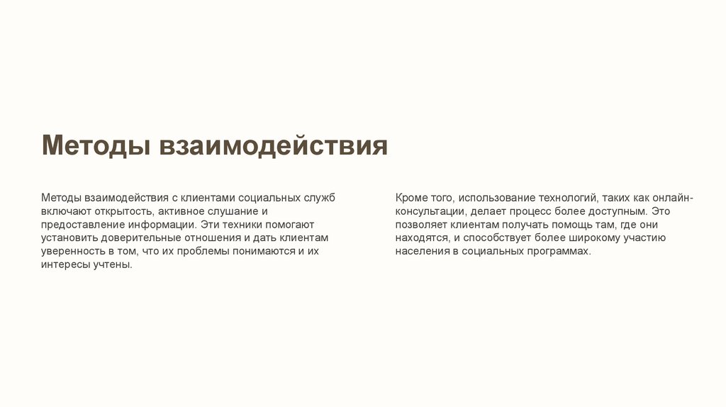 Методы взаимодействияМетоды взаимодействия с клиентами социальных служб