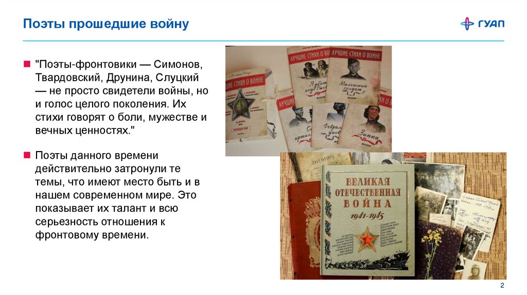 Поэты прошедшие войну"Поэты-фронтовики — Симонов,