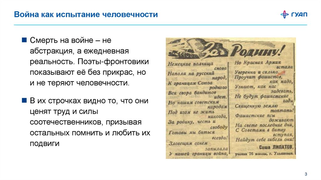 Поэзия как завещаниеСтихи фронтовиков — не только о