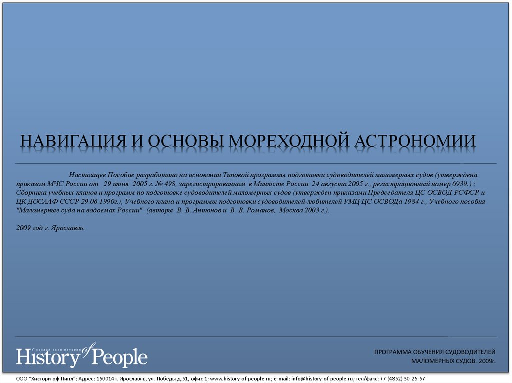 НАВИГАЦИЯ И ОСНОВЫ МОРЕХОДНОЙ АСТРОНОМИИНастоящее Пособие разработано на основании Типовой программы подготовки судоводителей маломерных судов (утверждена