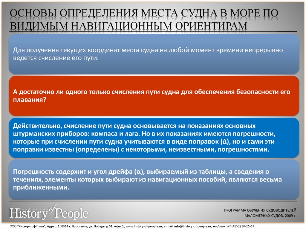путями и использующая для этой цели современные штурманские приборы, мореходные инструменты, морские навигационные карты, руководства и