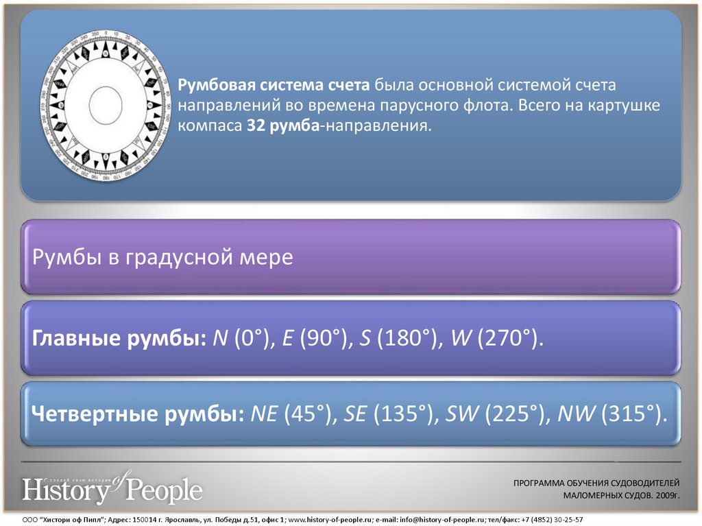 Румбовая система счета была основной системой счетанаправлений во времена парусного флота. Всего на картушке