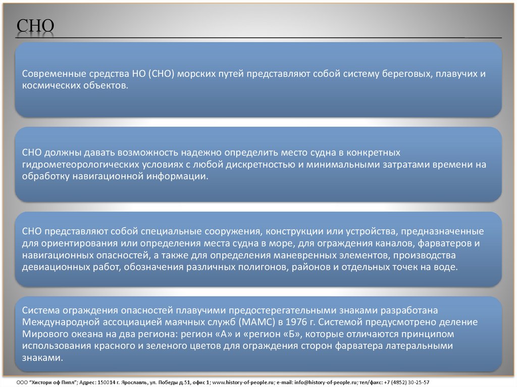 СНОСовременные средства НО (СНО) морских путей представляют собой систему береговых, плавучих и