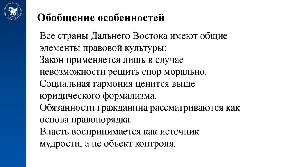Обобщение особенностейВсе страны Дальнего Востока имеют общие