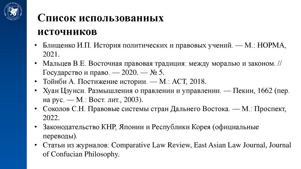 • Мальцев В.Е. Восточная правовая традиция: между моралью и законом. //