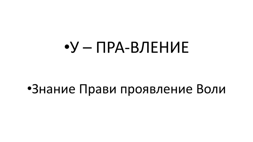•У – ПРА-ВЛЕНИЕ•Знание Прави проявление Воли