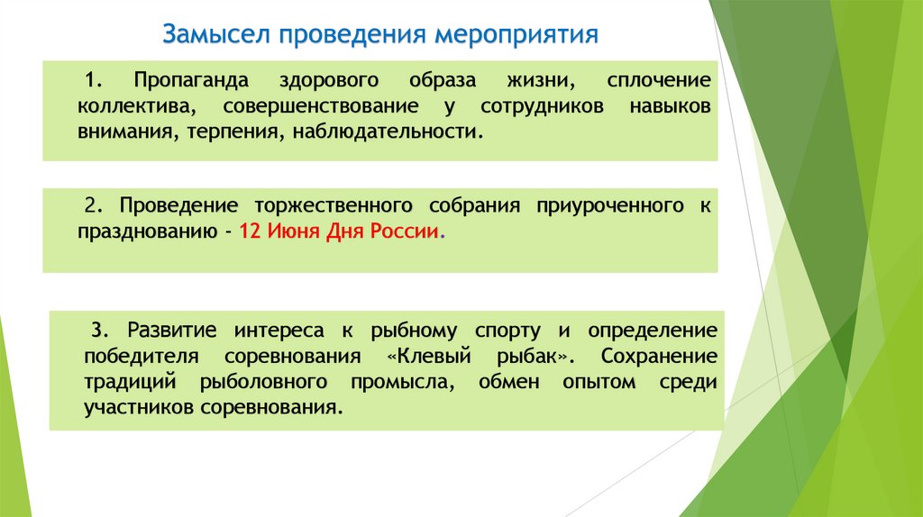 Замысел проведения мероприятия1. Пропаганда здорового образа жизни, сплочение