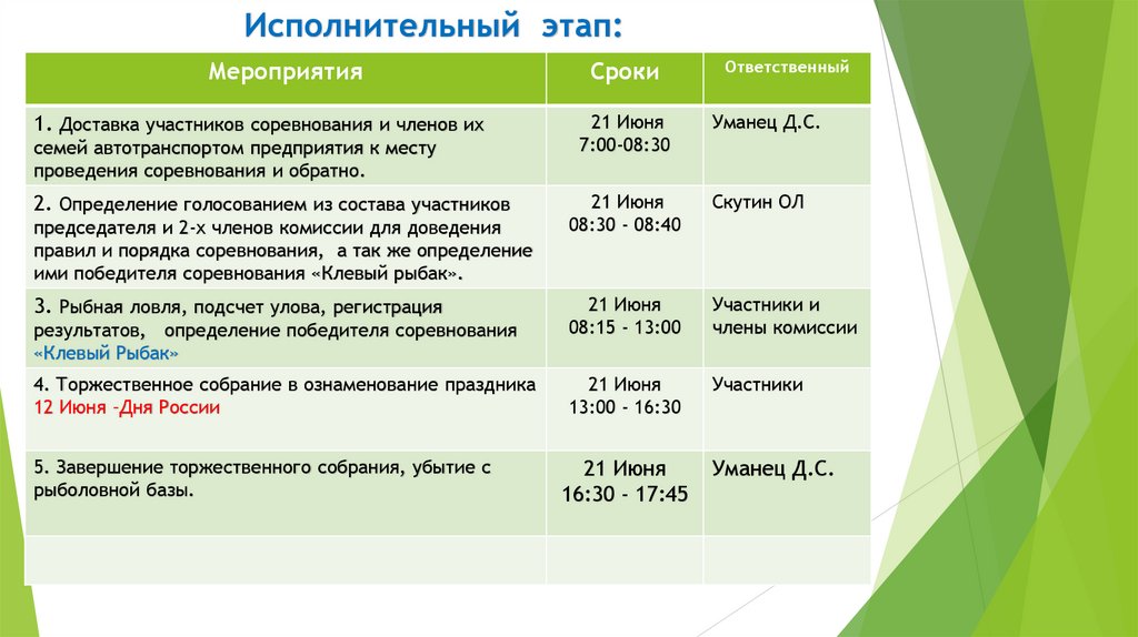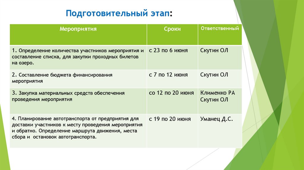 1. Определение количества участников мероприятия и с 23 по 6 июня