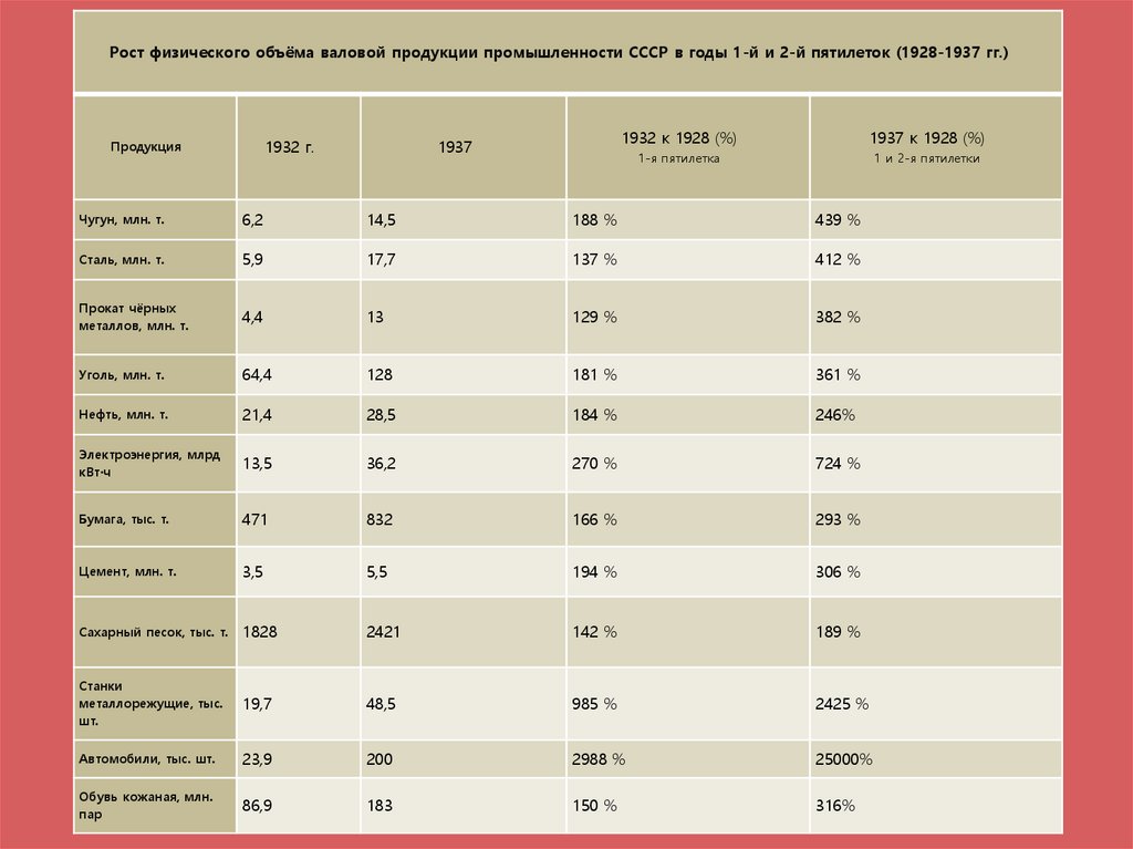 Рост физического объёма валовой продукции промышленности СССР в годы 1-й и 2-й пятилеток (1928-1937 гг.)1932 г.