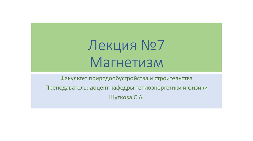Лекция №7 Магнетизм