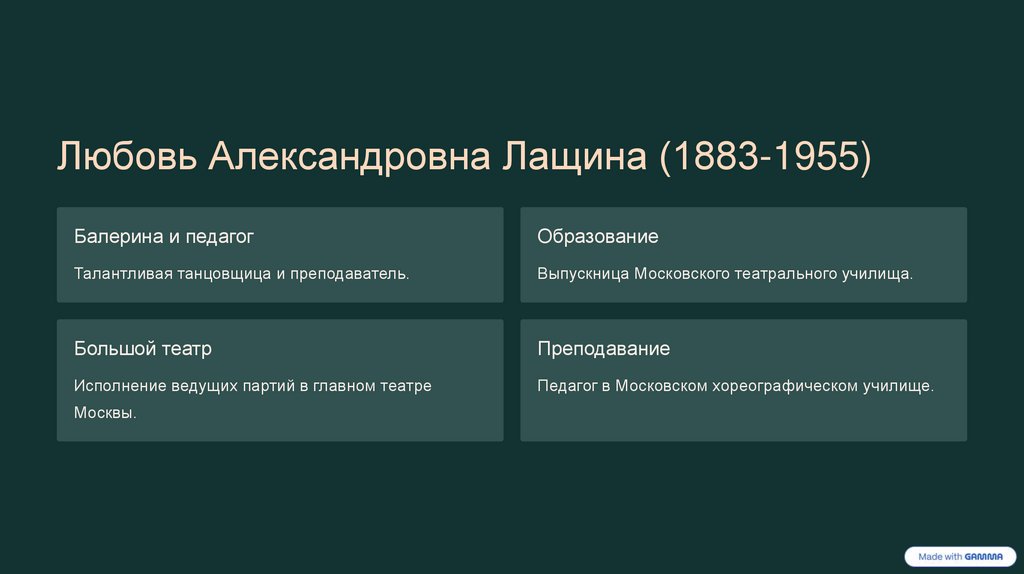 Любовь Александровна Лащина (1883-1955)Балерина и педагог