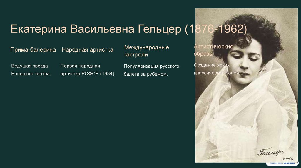 Екатерина Васильевна Гельцер (1876-1962)Прима-балерина Народная артистка