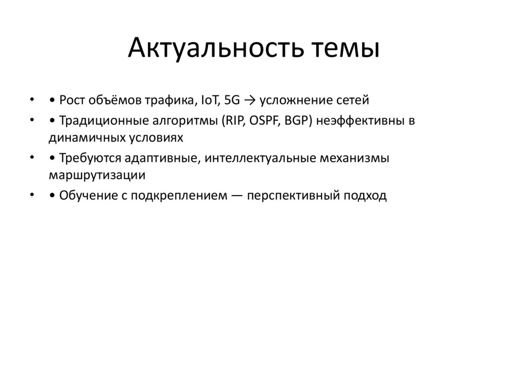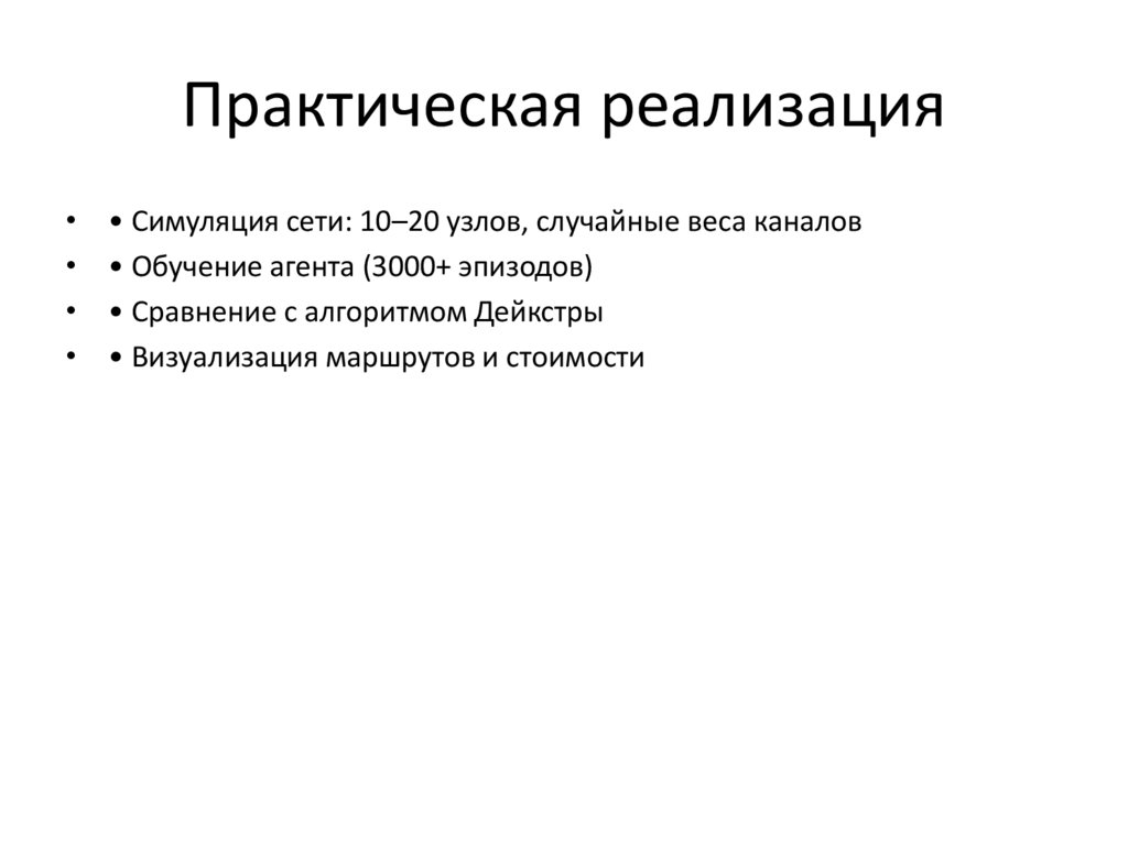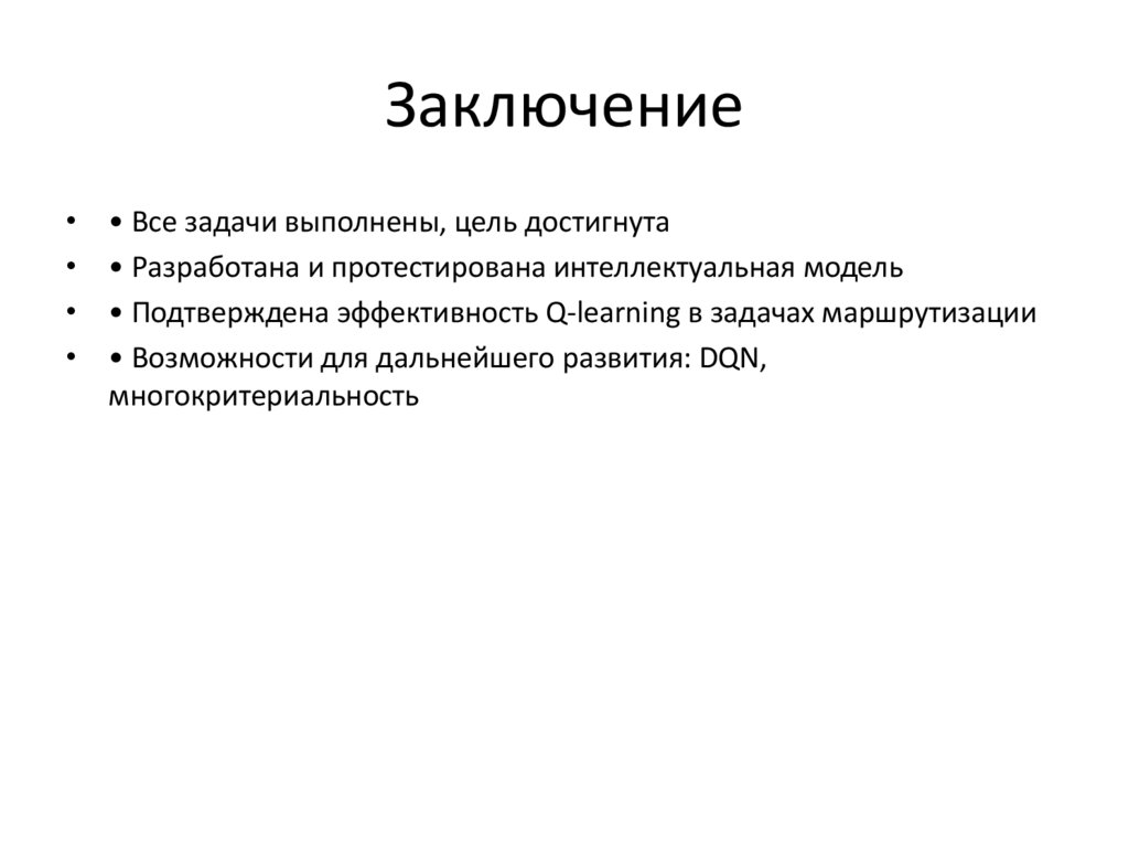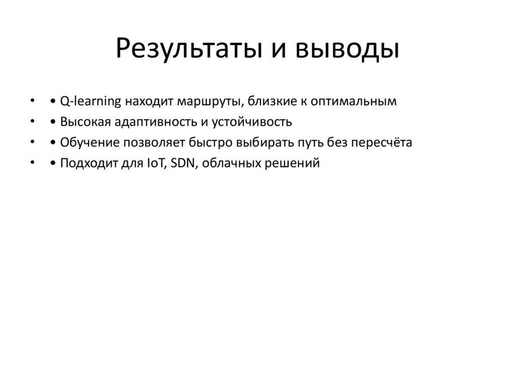 • Подтверждена эффективность Q-learning в задачах маршрутизации