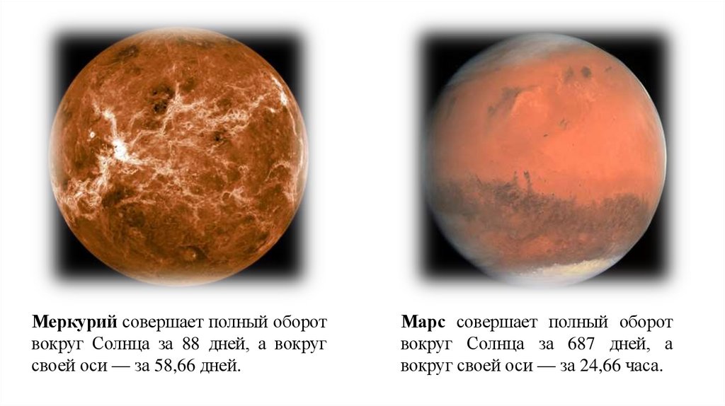 Меркурий совершает полный оборотвокруг Солнца за 88 дней, а вокруг