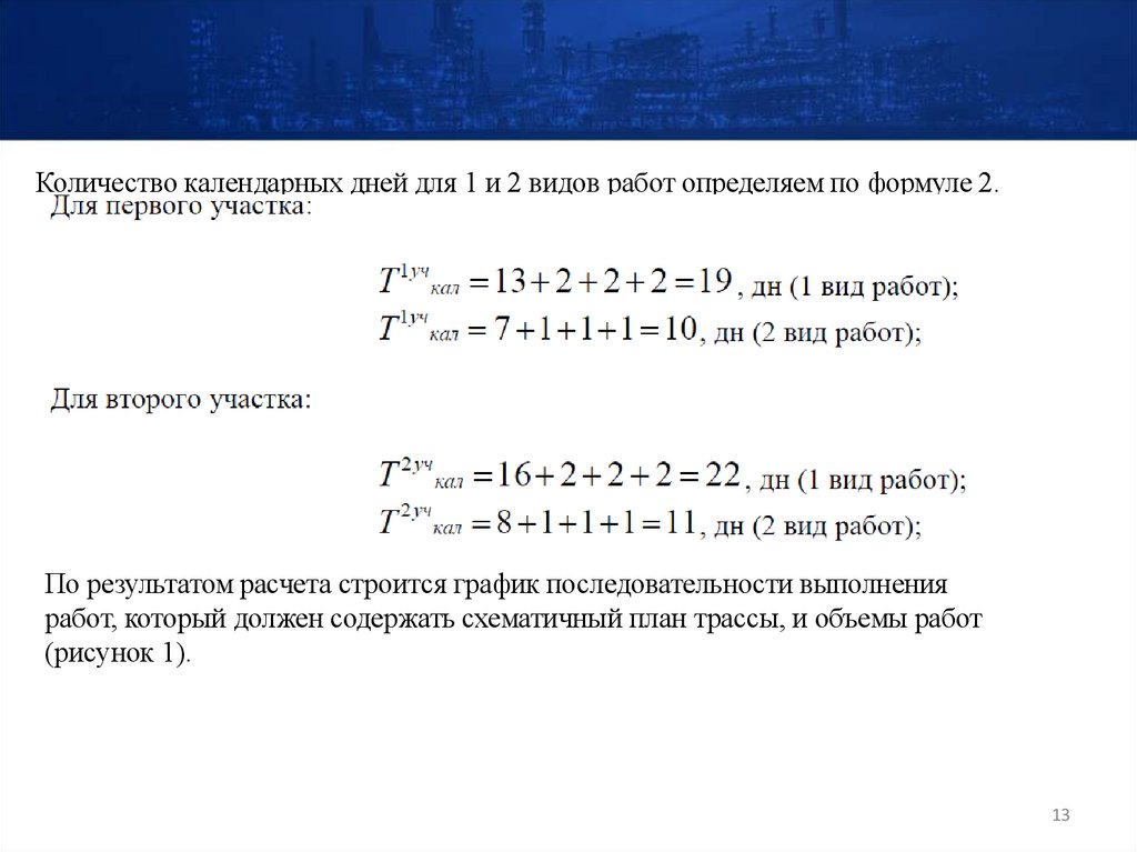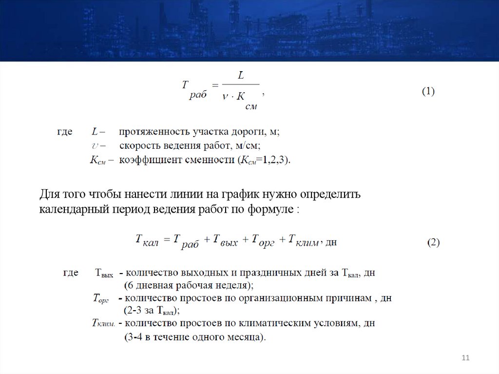 Для того чтобы нанести линии на график нужно определитькалендарный период ведения работ по формуле :