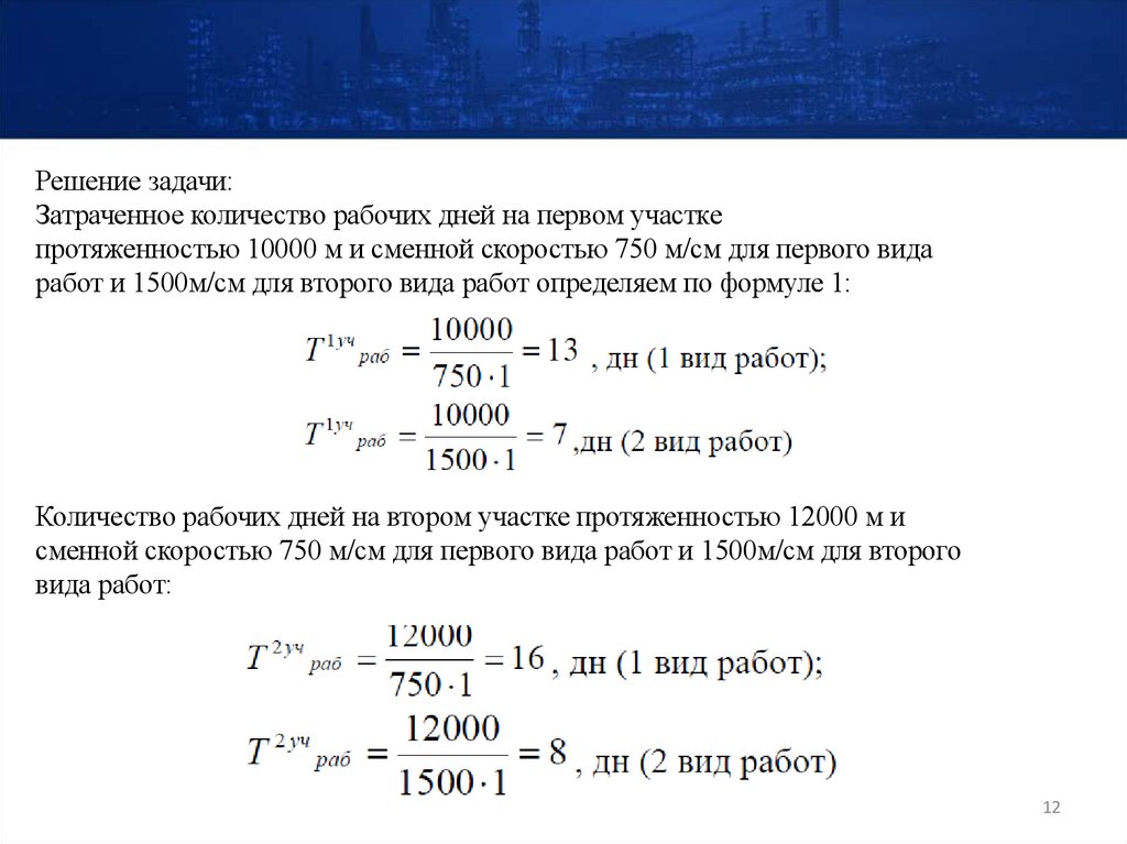 Количество рабочих дней на втором участке протяженностью 12000 м и