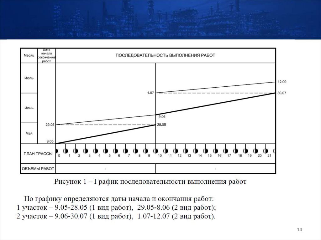 работ, который должен содержать схематичный план трассы, и объемы работ