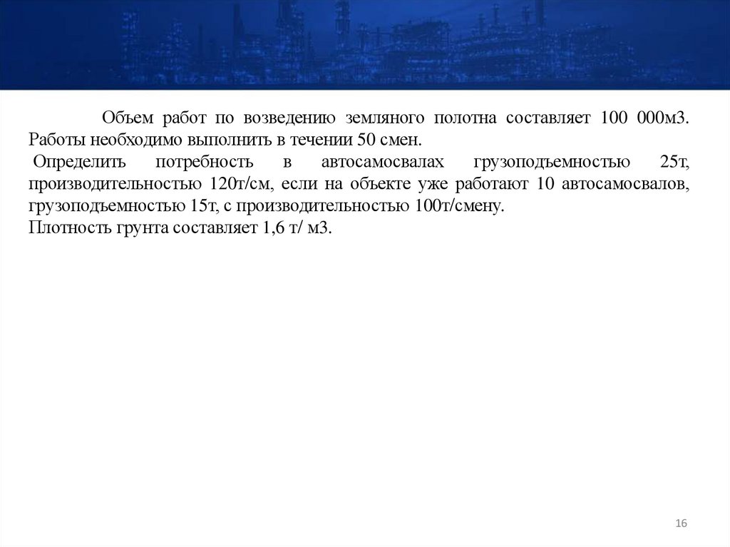 Производительность автосамосвалов 100 т/см. Количество автосамосвалов 20шт.