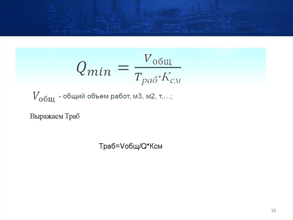 Выражаем ТрабТраб=Vобщ/Q*Ксм