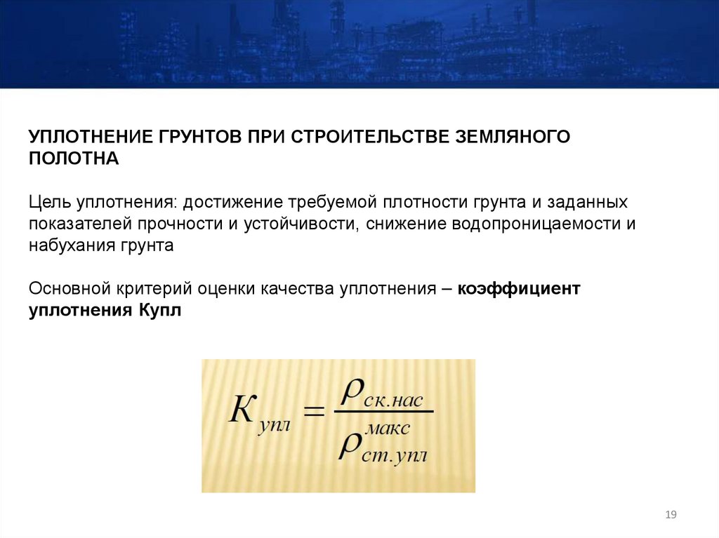 УПЛОТНЕНИЕ ГРУНТОВ ПРИ СТРОИТЕЛЬСТВЕ ЗЕМЛЯНОГОПОЛОТНА