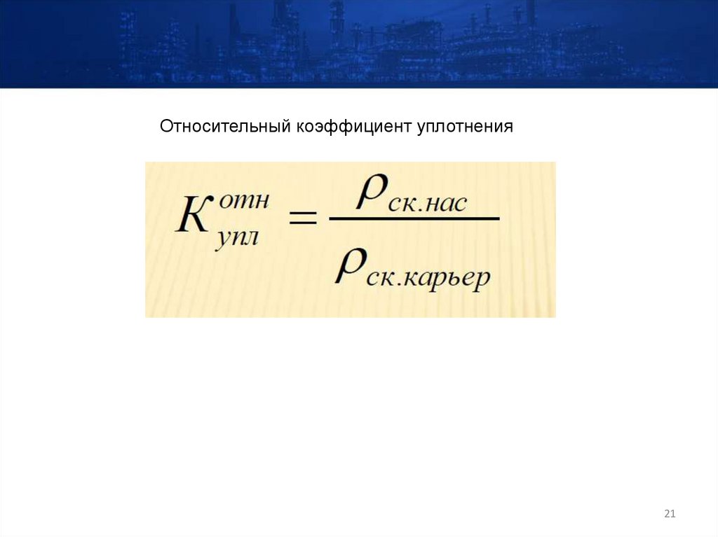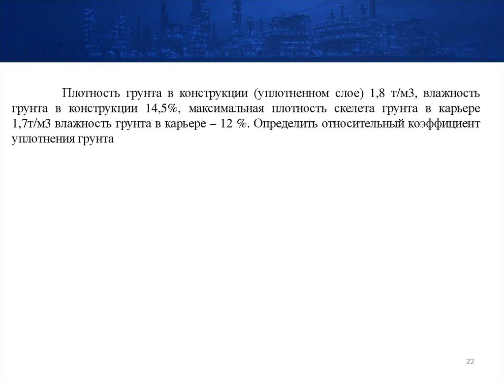 1,7т/м3 влажность грунта в карьере – 12 %. Определить относительный коэффициент