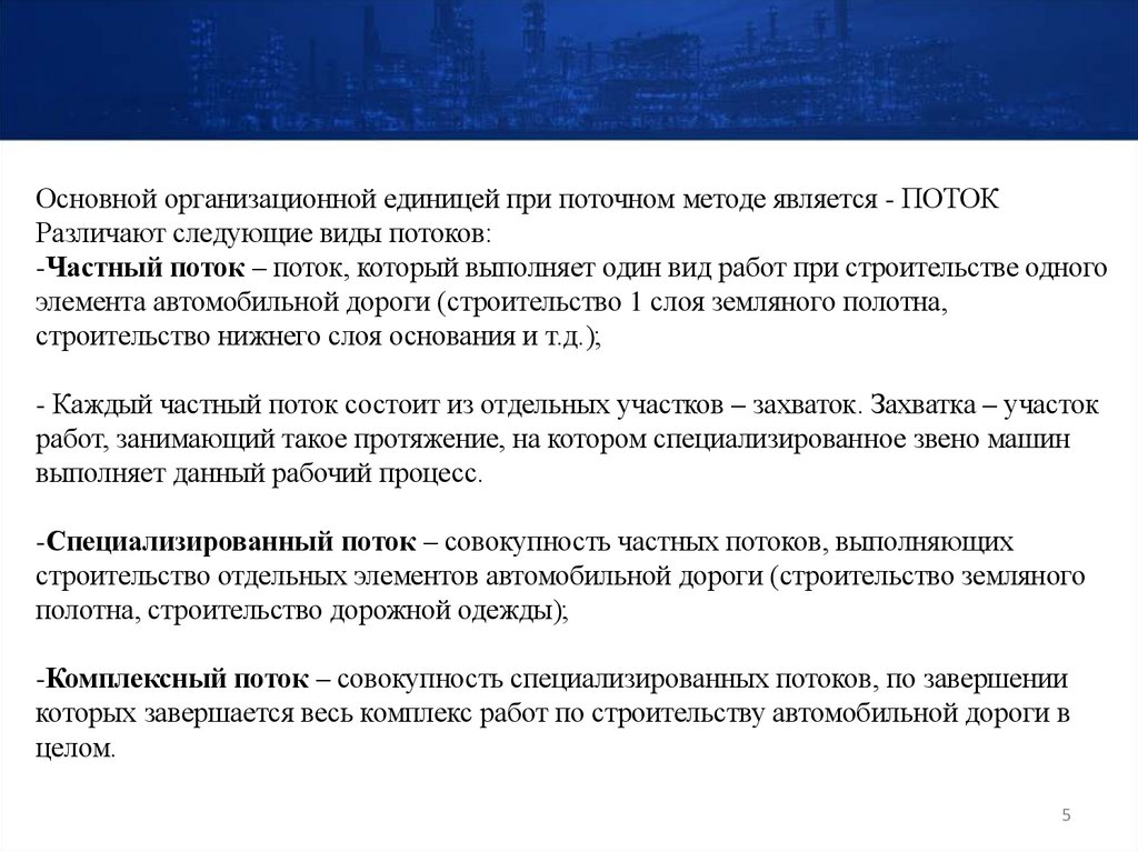 - Каждый частный поток состоит из отдельных участков – захваток. Захватка – участок