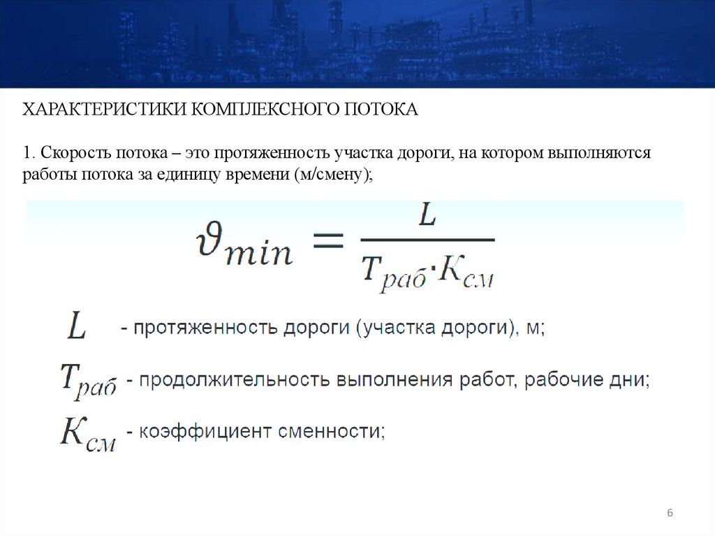 ХАРАКТЕРИСТИКИ КОМПЛЕКСНОГО ПОТОКА1. Скорость потока – это протяженность участка дороги, на котором выполняются