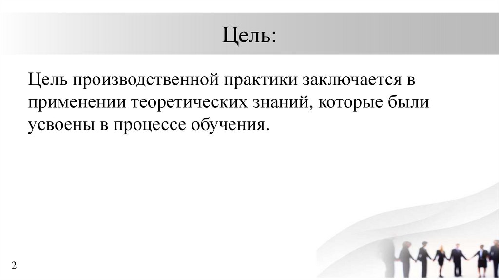 Цель:Цель производственной практики заключается в