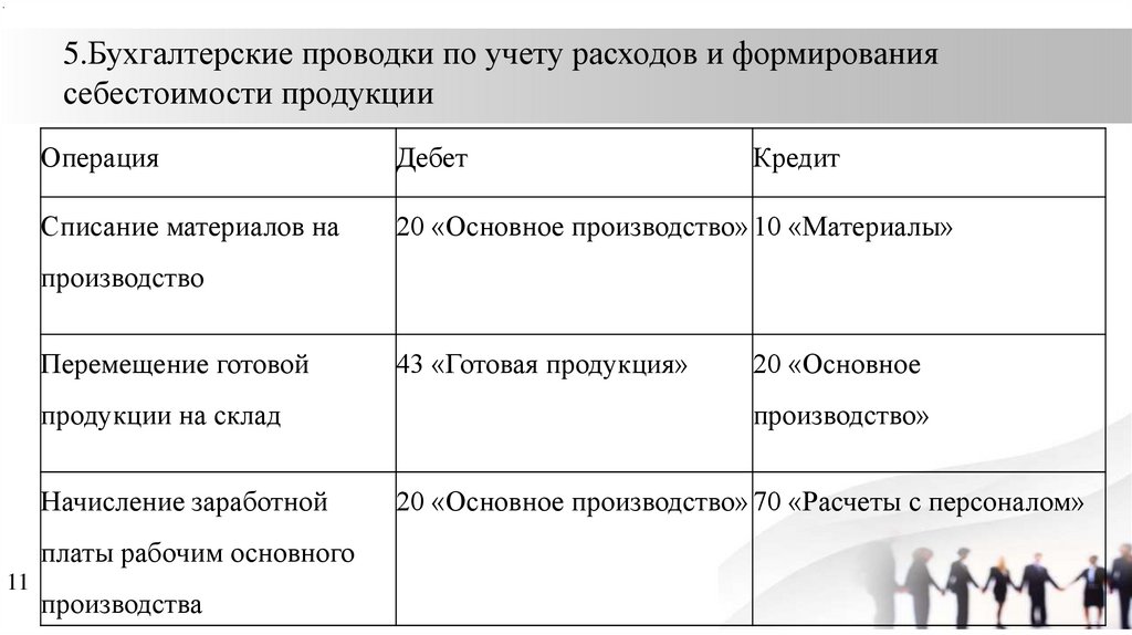 .4. Бухгалтерские проводки по учету затрат на производство