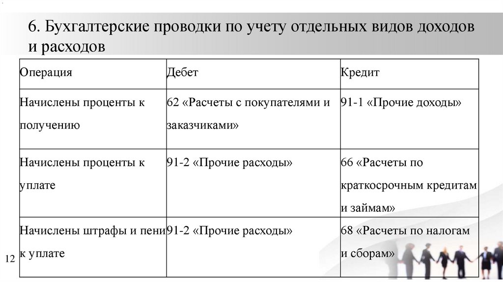 .6. Бухгалтерские проводки по учету отдельных видов доходов