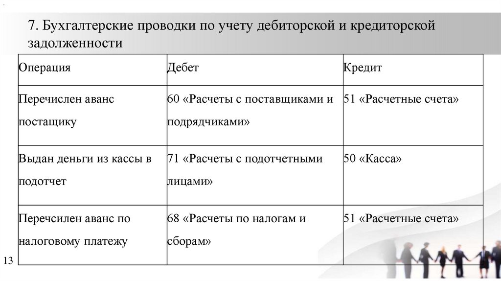 .7. Бухгалтерские проводки по учету дебиторской и кредиторской