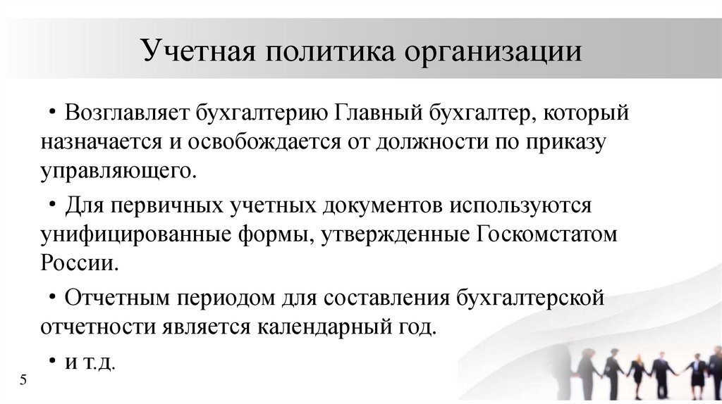 Учетная политика организации·Возглавляет бухгалтерию Главный бухгалтер, который