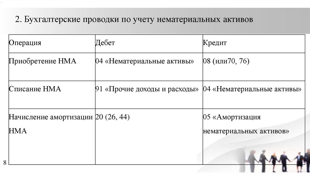 .2. Бухгалтерские проводки по учету нематериальных активов