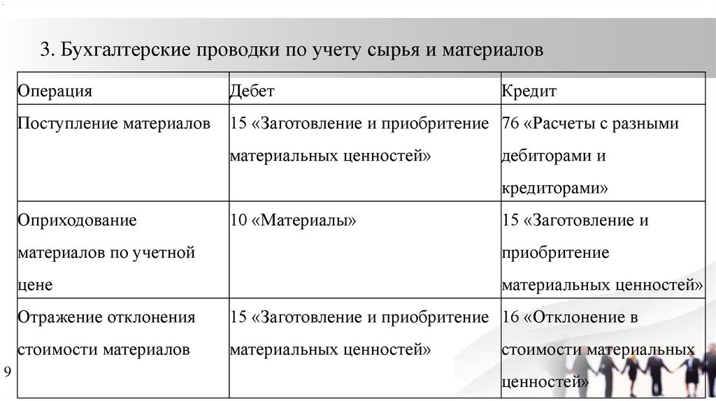 .3. Бухгалтерские проводки по учету сырья и материалов