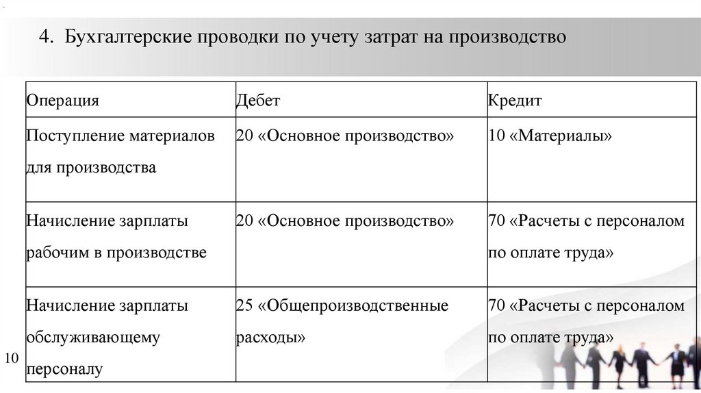 20 «Основное производство» 10 «Материалы»