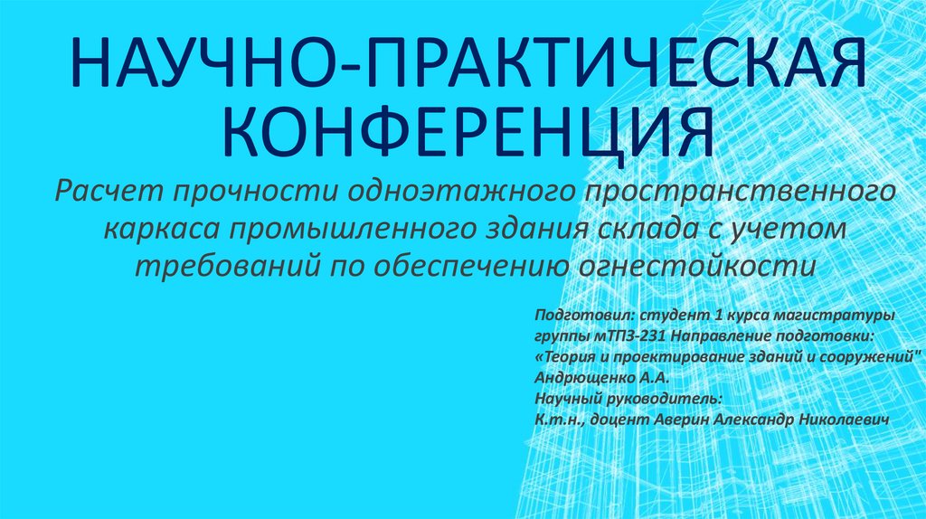 Расчет прочности пространственного каркаса промышленного здания склада с учетом требований по обеспечению огнестойкости