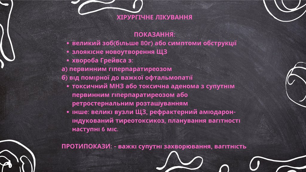 інше: великі вузли ЩЗ, рефрактерний аміодароніндукований тиреотоксикоз, планування вагітності