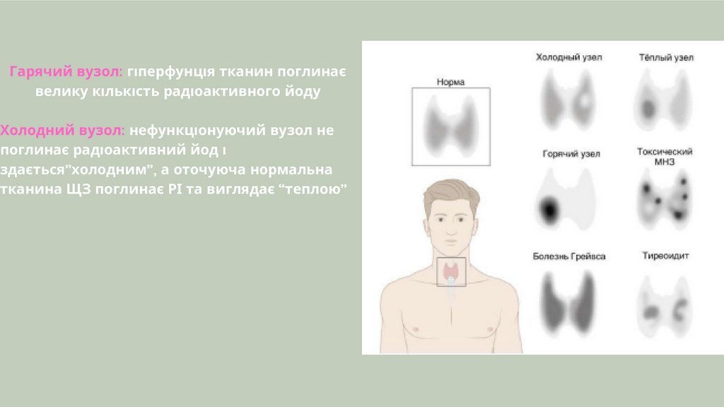Гарячий вузол: гіперфунція тканин поглинаєвелику кількість радіоактивного йоду