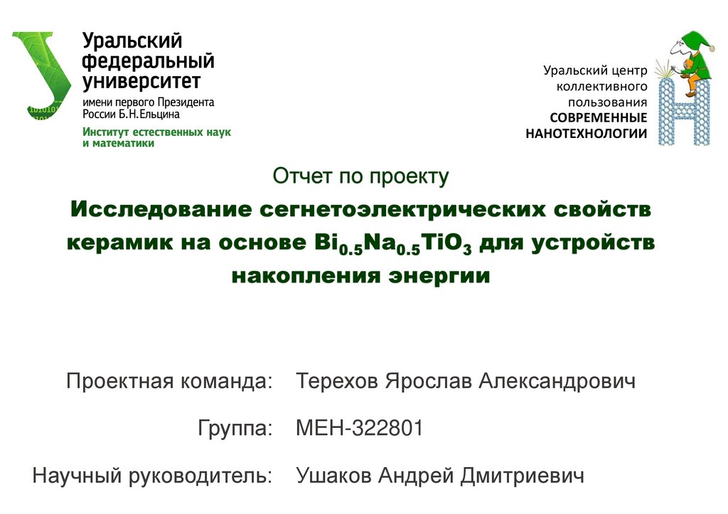 1. Отчет по проекту Исследование сегнетоэлектрических свойств керамик на основе Bi0.5Na0.5TiO3 для устройств накопления энергии