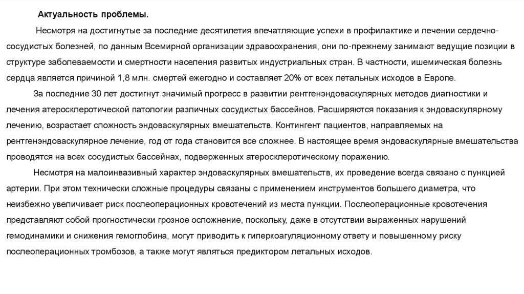 сосудистых гемостатических устройств у пациентов после эндоваскулярных вмешательств. Отсутствуют четкие рекомендации по