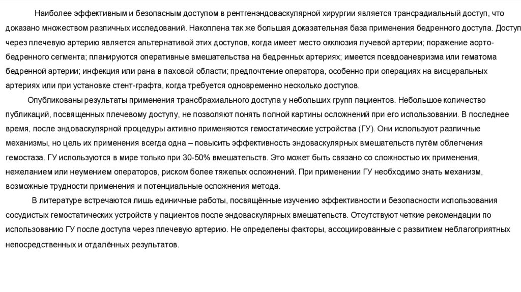 использованию ГУ после доступа через плечевую артерию. Не определены факторы, ассоциированные с развитием неблагоприятных