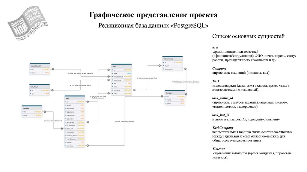 Графическое представление проектаРеляционная база данных «PostgreSQL»