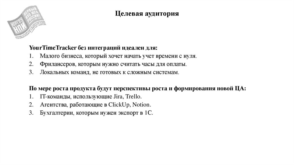 Целевая аудиторияYourTimeTracker без интеграций идеален для: