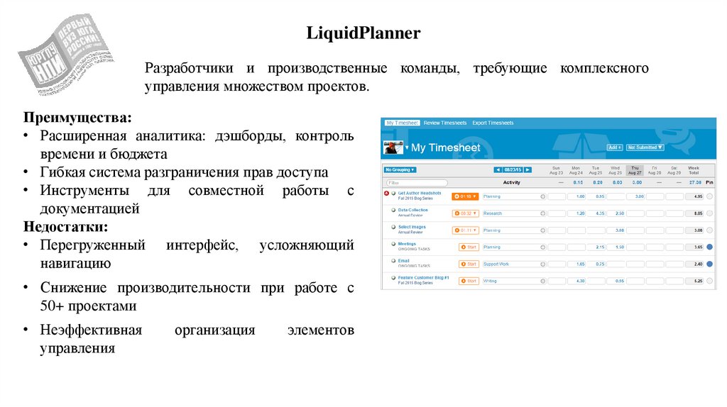 LiquidPlannerРазработчики и производственные команды, требующие комплексного