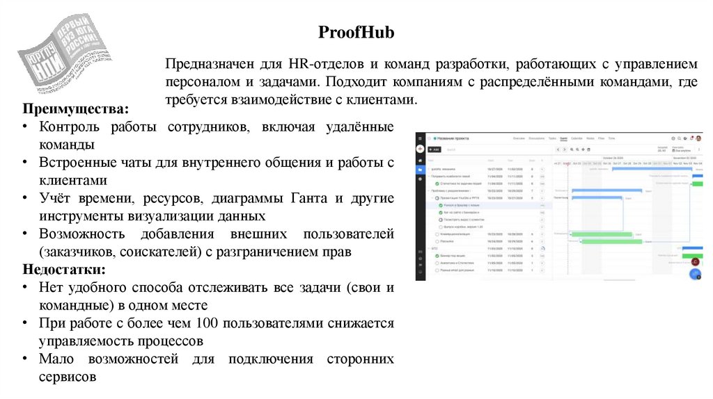 ProofHubПредназначен для HR-отделов и команд разработки, работающих с управлением